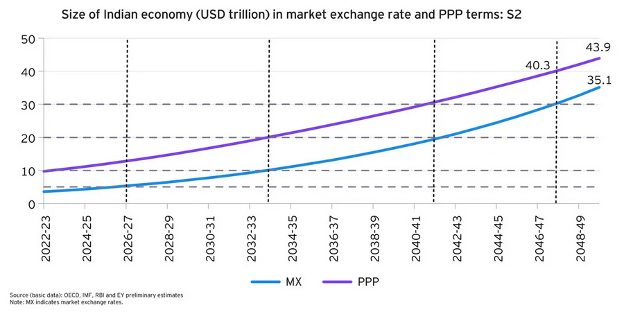 According to estimates from several global institutions, India could reach a $10 trillion GDP between 2030 and 2035, provided its current growth trajectory continues.